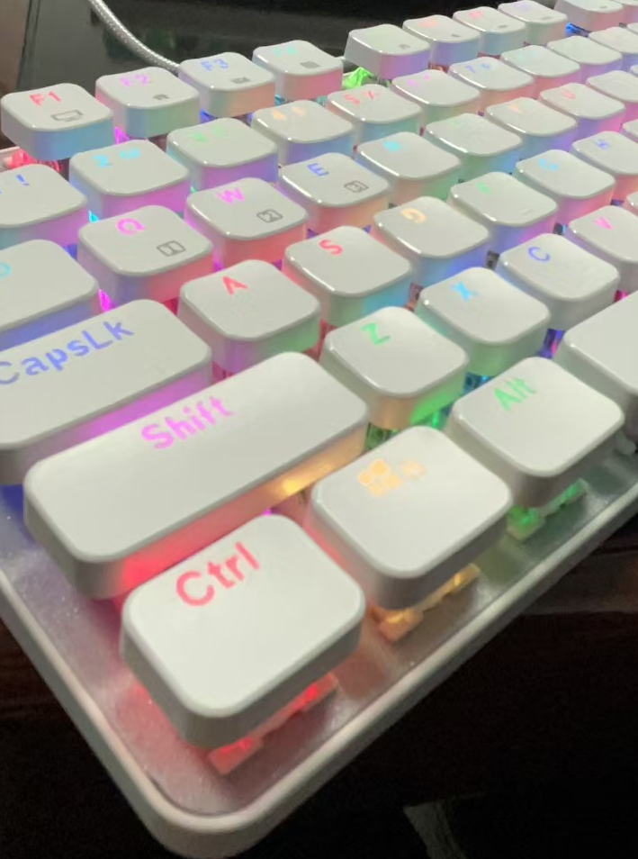 在键帽表面喷涂一层特殊涂料,涂层增加键帽的触感或视觉效果,如磨砂感、金属感等。