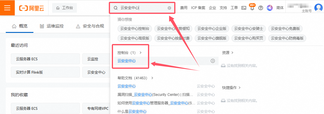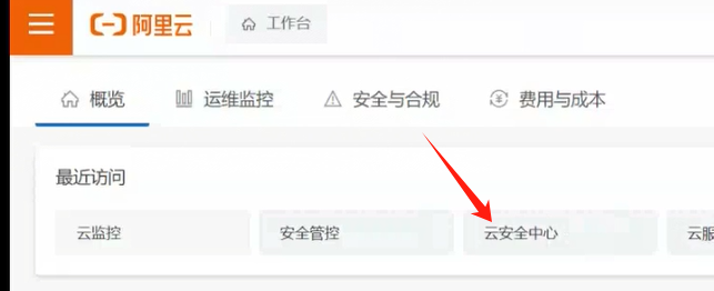 如果最近访问过,那么直接点击云安全中心即可,如下图: