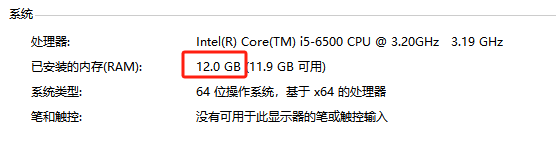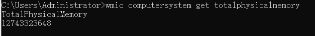 ②当然,还有一行cmd命令可以查出电脑目前的内存大小 命令:wmic computersystem get totalphysicalmemory 12743323648的单位也是字节(B)≈12G。