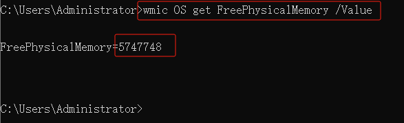 ③wmic OS get FreePhysicalMemory /Value命令可以查询当前空闲内存大小,如下图所示: