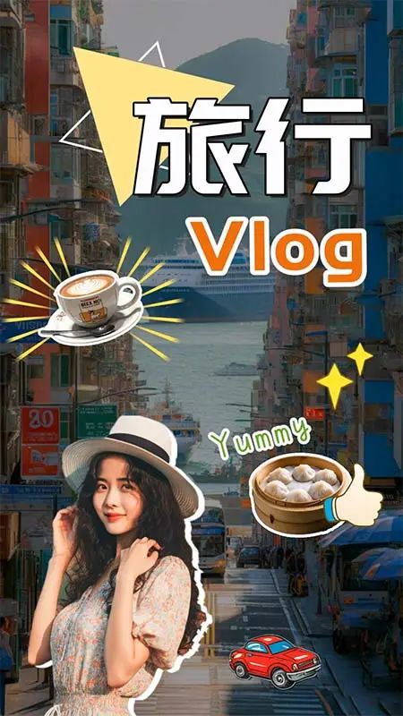 我们想要自定义去添加字幕内容,像短视频顶部标题、电影片名、片尾字幕,在这里都可以使用“字幕特效”功能来添加。配上描边图片进行装饰,漂亮的Vlog片头就搞定了!此外还可以制作片尾字幕,像关注我片尾,电影滚动片尾字幕效果等等。