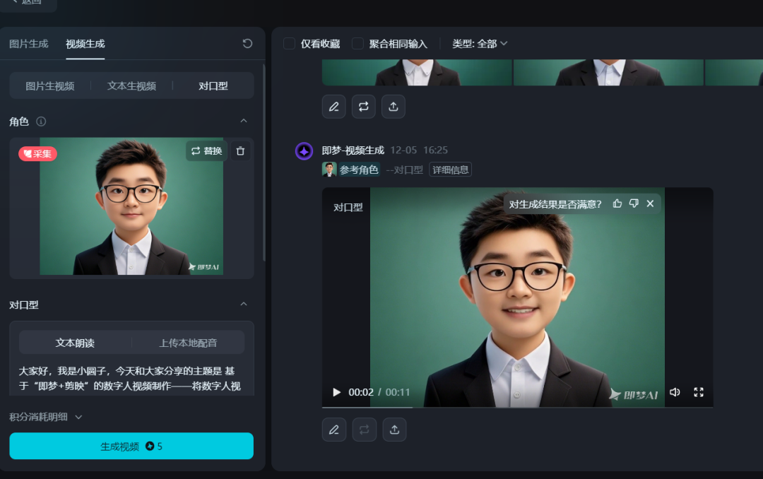 水印没有遮住人物主体, 便于后期生成视频, 进行绿幕抠图 PART.02 即梦生视频