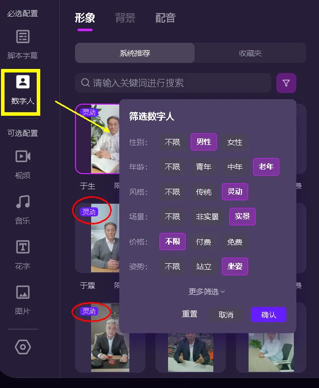 在给出建议之前,,我通常会反问两个问题: 第一,您愿意在镜头前露脸吗? 第二,愿意花钱买效率吗? 愿意露脸的,他们往往是已经积累了一定经验的视频创作者,或是觉得传统录制方式耗时耗力,想借助 AI 提升效率;或是嘴笨,希望摆脱背稿的困扰,同时又对视频质量有较高要求。 针对这类创作者,我推荐用对嘴型 AI,形象是你自己的,声音是你自己的,你念 123 就可以了。具体软件,国外同学的我推荐 dreamface,国内的我推荐另一款数字人软件,小贵 而对于不想露脸,希望能够免费使用的大多数用户来说 - 比如"只想让数字人帮我念稿"。我有两款软件可以推荐 第一款,即创!字节跳动亲儿子,上千个数字人形象