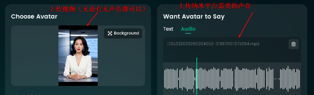 克隆的操作详见《效果一流还免费?这个力压 Sora 的中国 AI 出语音克隆了》 国内平替版可以使用:www.talkingavatar.ai,虽然是英文网站,但是支持国内访问,国内邮箱注册 最后,是制作训练素材的最后一步,我们用 dreamface 合成。 dreamface 免费版时间限制在 30 秒以内,满足时间要求