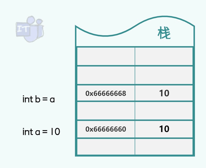 栈也是有内存地址的,这一点很重要,无论栈空间上存储的是值还是引用地址,这个栈空间本身也有自己对应的内存地址。 什么是值传递?什么是引用传递? 值传递:如果变量按值传递给方法,则会把变量的副本传递给方法。对于值类型则把变量的副本传递给方法,对于引用类型则把变量的引用的副本传递给方法。因此被调用方法参数会创建一个新的内存地址用于接收存储变量,因此在方法内部对变量修改并不会影响原来的值。 引用传递:如果变量按引用传递给方法,则会把变量的引用传递给方法,对于值类型则把变量的栈空间地址传递给方法,对于引用类型则把变量的引用的栈空间地址传递给方法。因此被调用方法参数不会创建一个新的内存地址用于接收存储变量,意味着形参与实参共同指向相同的内存地址,因此在方法内部修对变量修改会影响原来的值。 上面的描述可能有点拗口,下面我们在基于值类型、引用类型、值传递、引用传递各种组合进行一个详细说明。 01、值类型按值传递当值类型按值传递时,调用者会把值类型变量的副本传递给方法,因此被调用方法参数会创建一个新的内存地址用于接收存储变量,因此当在方法内部对参数进行修改时并不会影响调用者调用处的值类型变量。 传递值类型变量的副本就是相当于在栈上,又复制了一个同样的值,而且内存地址还不一样,所以互不影响。如下图把a赋值给b,则b直接新开辟了一个栈空间,虽然a和b都是10,但是它们在不同的地址空间中,因此如果他们各自被修改了,也互不影响。