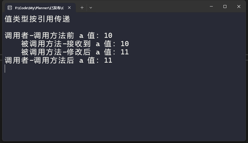 另外string是一个特殊的引用类型,string类型变量的按值传递和按引用传递和值类型是一致的,也就是要把string类型当值类型一样看待就行。string类型的特殊性我们后面会单独具体介绍。 在C#中以下修饰符可应用与参数声明,并且会使得参数按引用传递:ref、out、readonly ref、in。对于每个修饰符具体怎么使用就不再这里细说了。 相信到这里你应该就可以回答我之前在《LeetCode题集-2 - 两数相加》最后提的问题了。 注:测试方法代码以及示例源码都已经上传至代码库,有兴趣的可以看看。https://gitee.com/hugogoos/Planner 转自https://www.cnblogs.com/hugogoos/p/18419656 该文章在 2025/1/2 8:42:30 编辑过 |