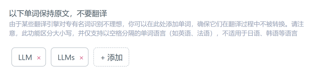 细节拉满沉浸式翻译的细节做的也很到位,我们都知道,各行各业都有专有名词,AI 翻译起来也是不够智能,从事行业的人肯定都知道它是什么意思,可以设置不翻译,以免曲解原有的意思。