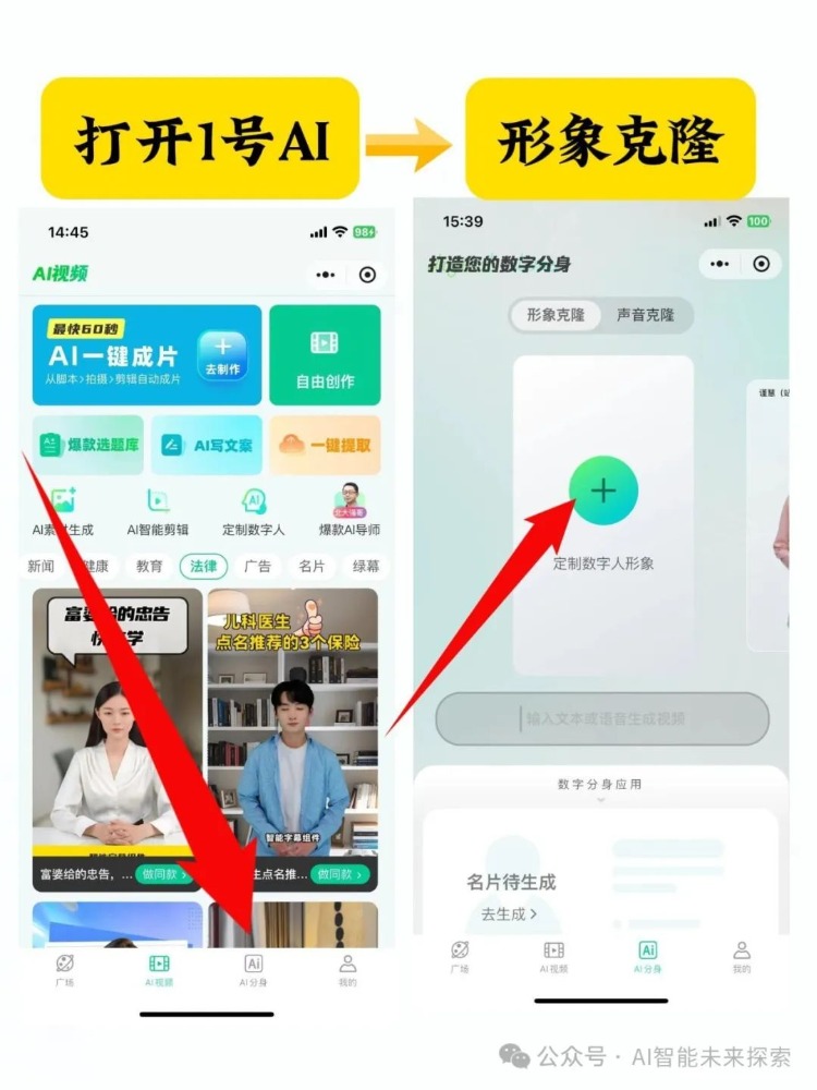 大家可能越来越多的看到数字人了,普通人想克隆一个自己的数字人分身做视频,不用再花十天半个月去找公司定制了!直接上传一段1-3分钟真人视频,就可以生成一个和自己一摸一样的数字人分身啦!详细操作教程:第一步:在1号AI页面,点击右下角“AI分身”第二步:选择形象克隆,定制数字人形象第三步:点击添加训练视频,上传一段1-3分钟录制好的真人口播视频,环境安静,开头结尾都要保持3秒静默,中间可以做一些通用动作,口播自然流畅第四步:给你的数字人取一个名字,点击添加授权视频,已经录制好的授权视频点击提交训练,AI就能克隆你的形象和声音了第五步:一个和你一摸一样的数字人就做好啦,只需要一段文本、语音就可以驱动生成视频啦每个人都可以做一个,这样的和自己1:1还原的AI数字人,让他替你出镜拍视频。