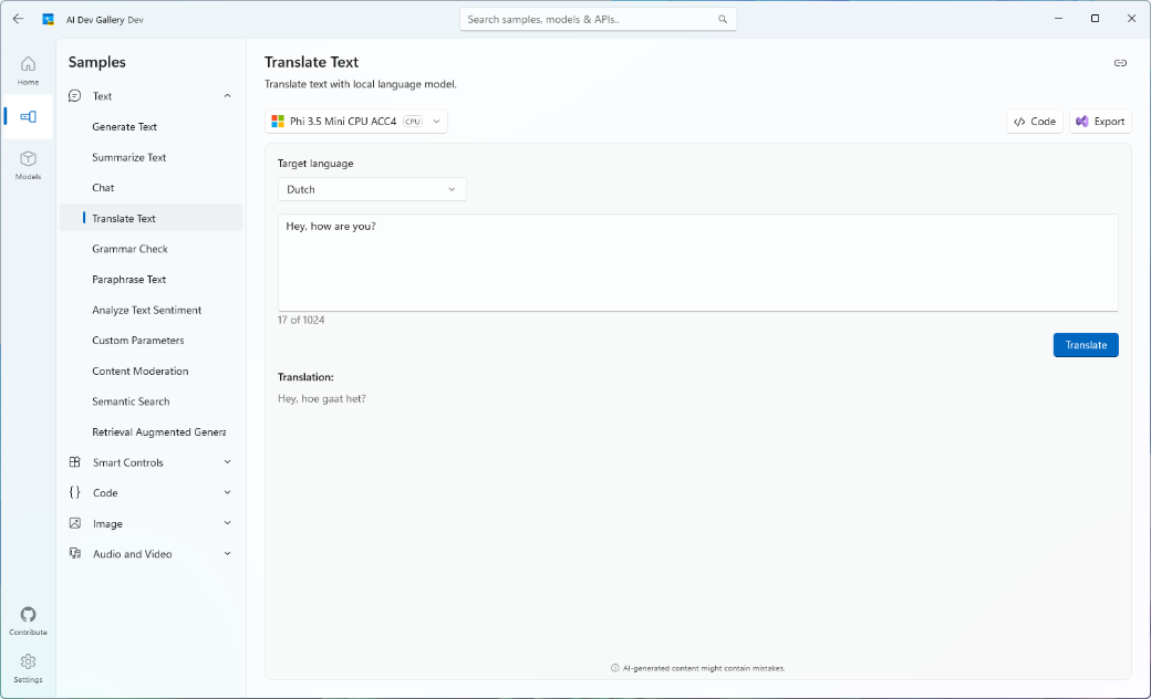 https://github.com/microsoft/ai-dev-gallery