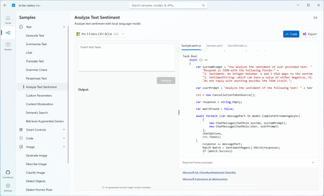 最近微软官方新推出AI Dev Gallery开源项目,可以帮助Windows开发人员学习如何将具有本地模型和API的AI添加到Windows应用程序中。