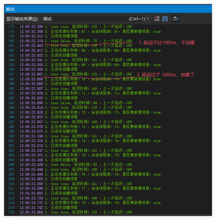 现在我们还是用上一篇的方法在如下三个方法 HasBlockingAdjustmentDelayElapsed,PerformBlockingAdjustment,CreateWorkerThread 上埋日志断点,埋好之后运行程序观察。