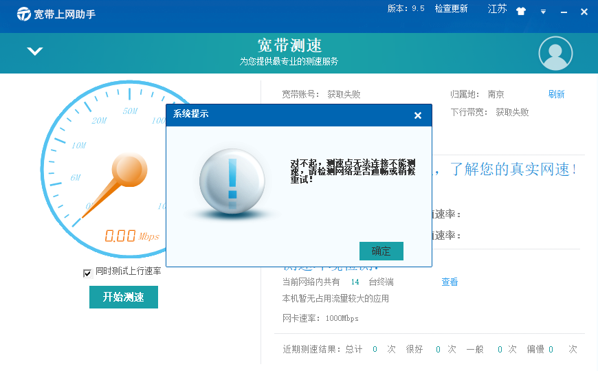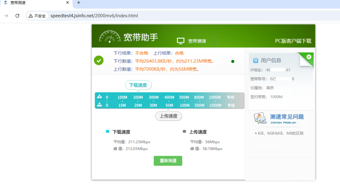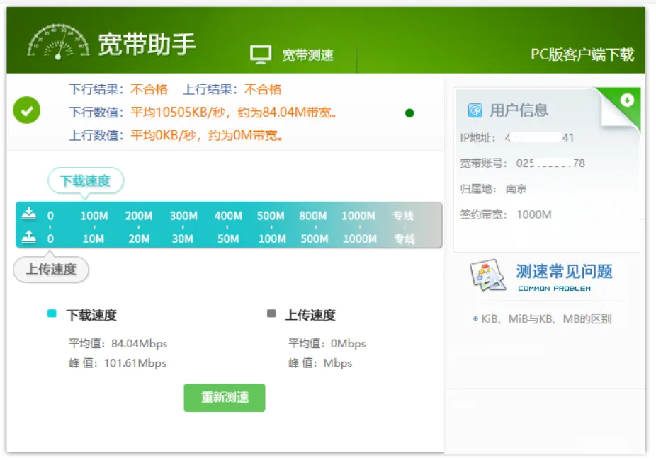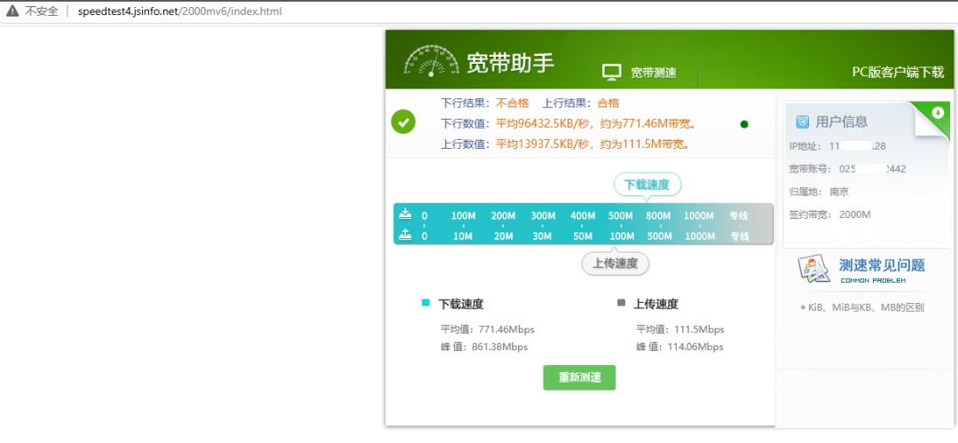 2000兆带宽安装好之后,测试后发现网速并没有什么改善。