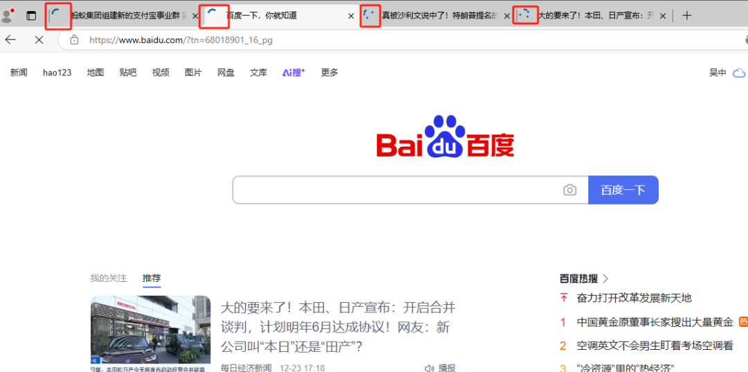 还有最明显的就是网站打开了,前面还有图标在转圈圈。