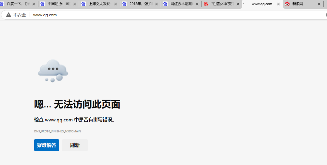 而且在检测完成之后,说是DNS有问题,换DNS也没有用。