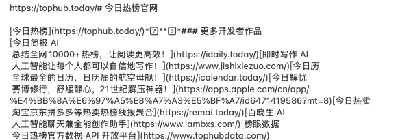 按下快捷键(macOS 使用 ⌥F,Windows/Linux 使用上面设置的 Alt+F)获取并转换内容。 转换后的 Markdown 内容会自动复制到剪贴板,我们只需要找个文档粘贴内容即可。