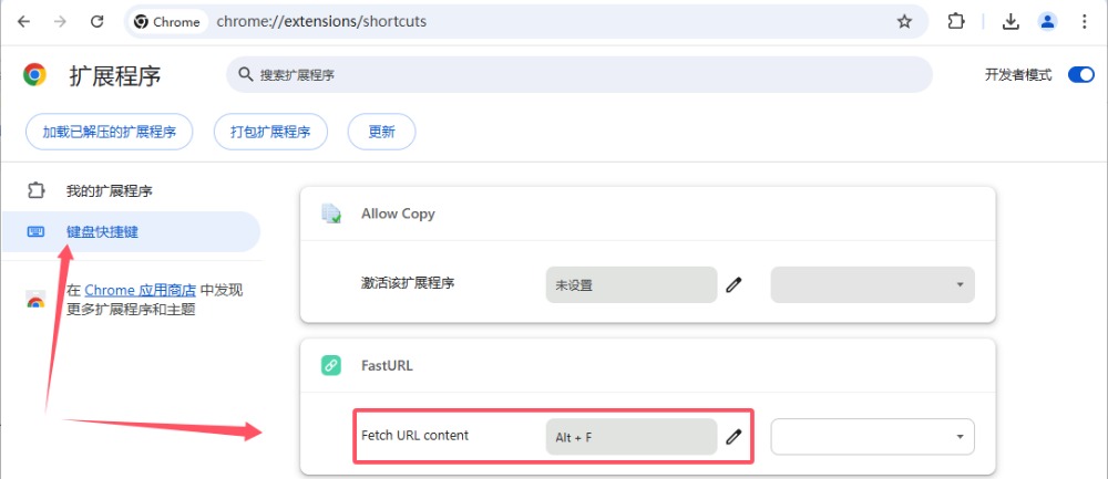 然后在键盘快捷键中,找到FastURL-》Fetch URL content,设置键盘快捷键为:Alt + F ![]() 简单操作步骤: 复制目标网页链接到系统剪贴板。