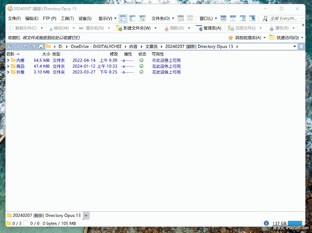 总结:总的来说,Directory Opus 的功能非常丰富齐全,基本上可以说是碾压微软 Windows 自带资源管理器的存在,各种细节贴心功能只有在用上之后才发现 DO 是有多么的好用。 下载:阅读原文:https://www.iplaysoft.com/directory-opus.html 该文章在 2025/1/9 17:38:57 编辑过 |