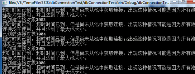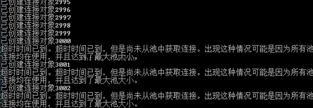 测试二: 设置max poolsize=3000,即连接池3000,MSSQL 连接限制32767