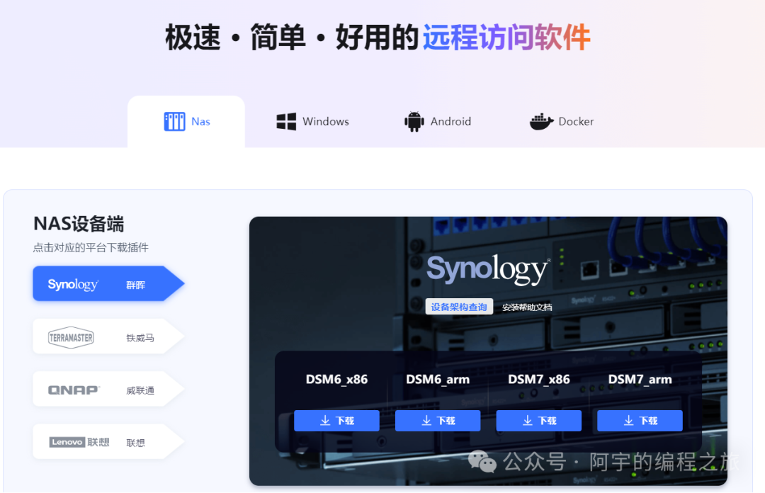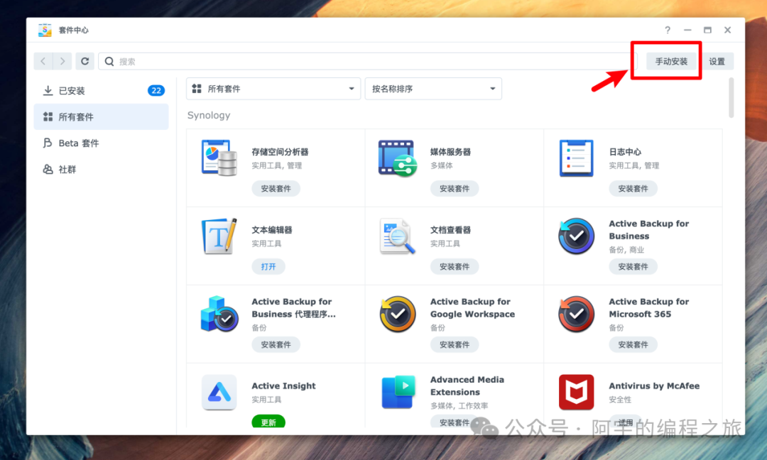 - 在同一个下载页面下载群晖NAS套件-手动安装至群晖