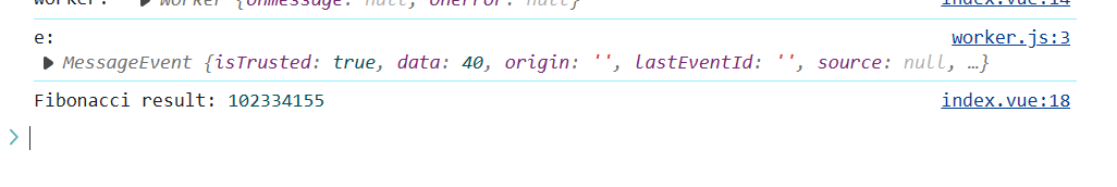 运行结果可以看到主线程打印出 webworker 计算的运行结果