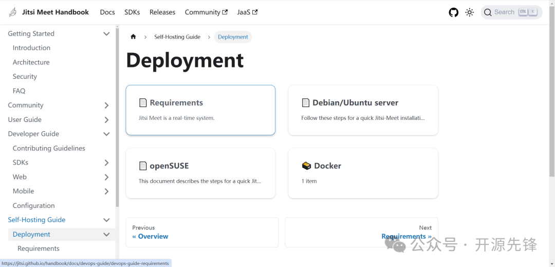 3、自托管部署。如果你想要完全控制和个性化功能,可以运行自己的Jitsi Meet实例。访问Jitsi手册https://jitsi.github.io/handbook/docs/intro/开始操作。提供Debian包和Docker设置,让部署变得超级简单。高级用户还可以从源代码构建所有组件,实现个性化功能开发。