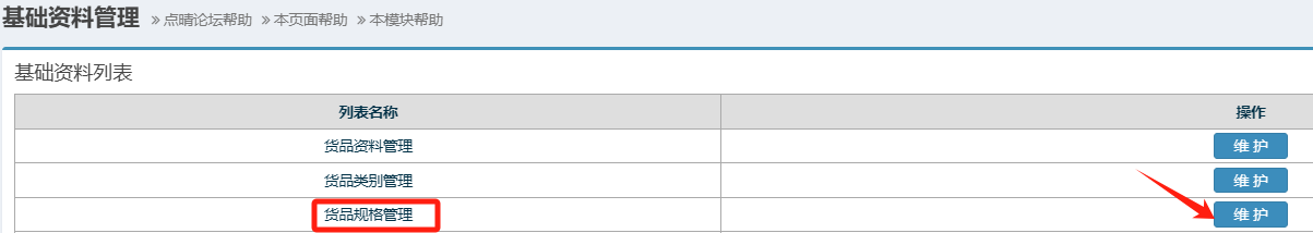 :点晴OA-低耗品管理-新增货品规格信息![]() 点击进入,业务管理,低值易耗品管理,基础资料维护 如下图: