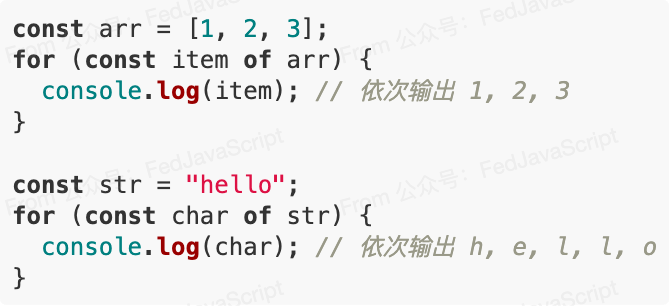 for...of 循环可以直接遍历数组、字符串、Set、Map 等可迭代对象的元素,语法更简洁。