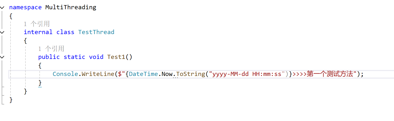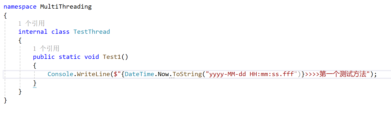 5、在Program中,把输出改成调用TestThread类中的测试方法再次执行测试一下