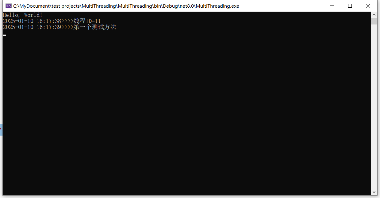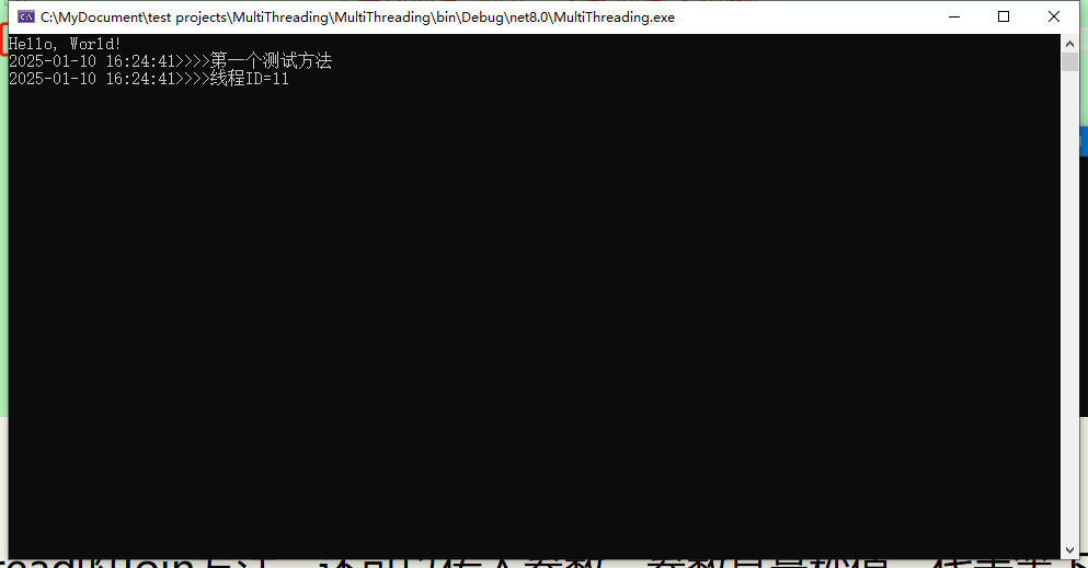 这就是多线程的特点 - 当多个线程并行执行时,它们的具体执行顺序是不确定的,除非我们使用同步机制(如 lock、信号量等)来控制执行顺序。 4、新建一个类TestThread,以及一个静态的测试方法,用来做测试使用