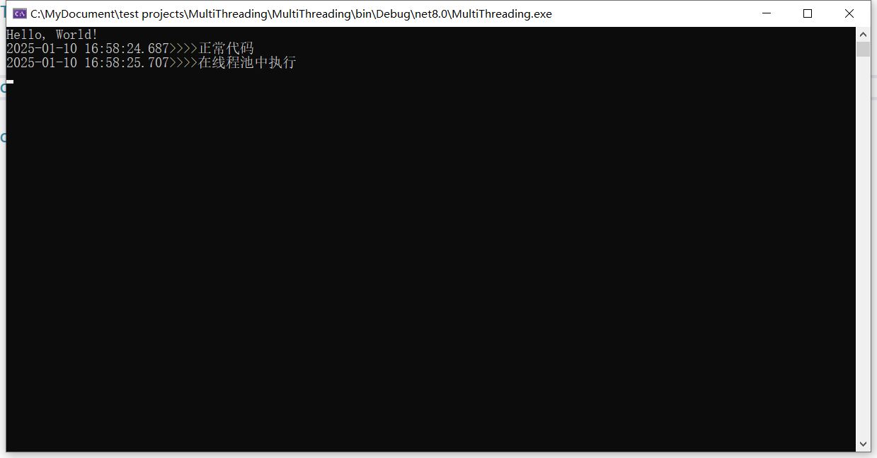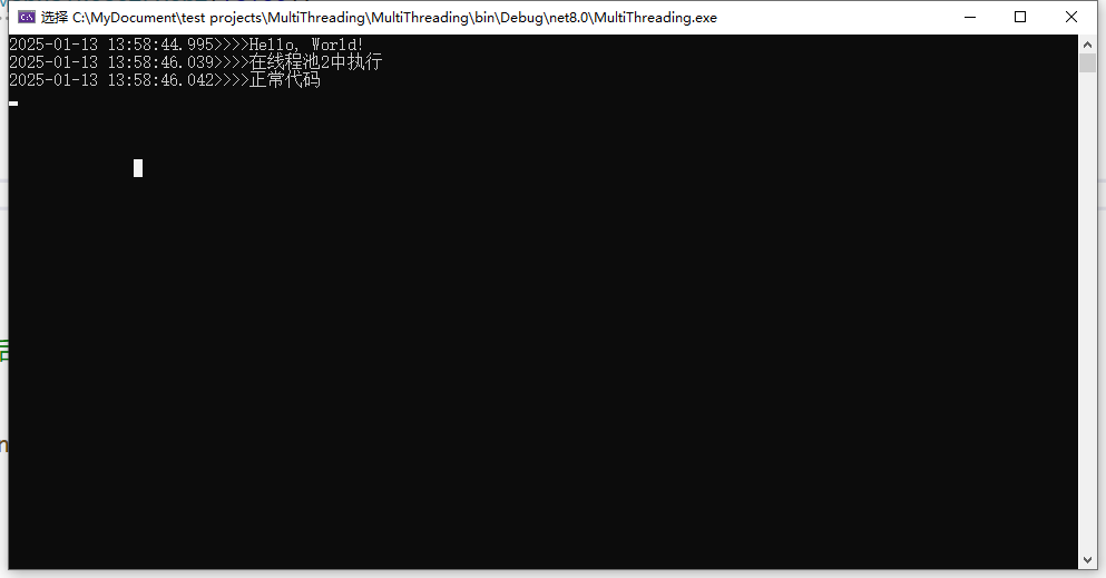 运行程序,查看执行结果 1、新增Test2方法,用来测试线程池ThreadPool使用