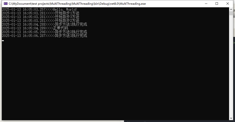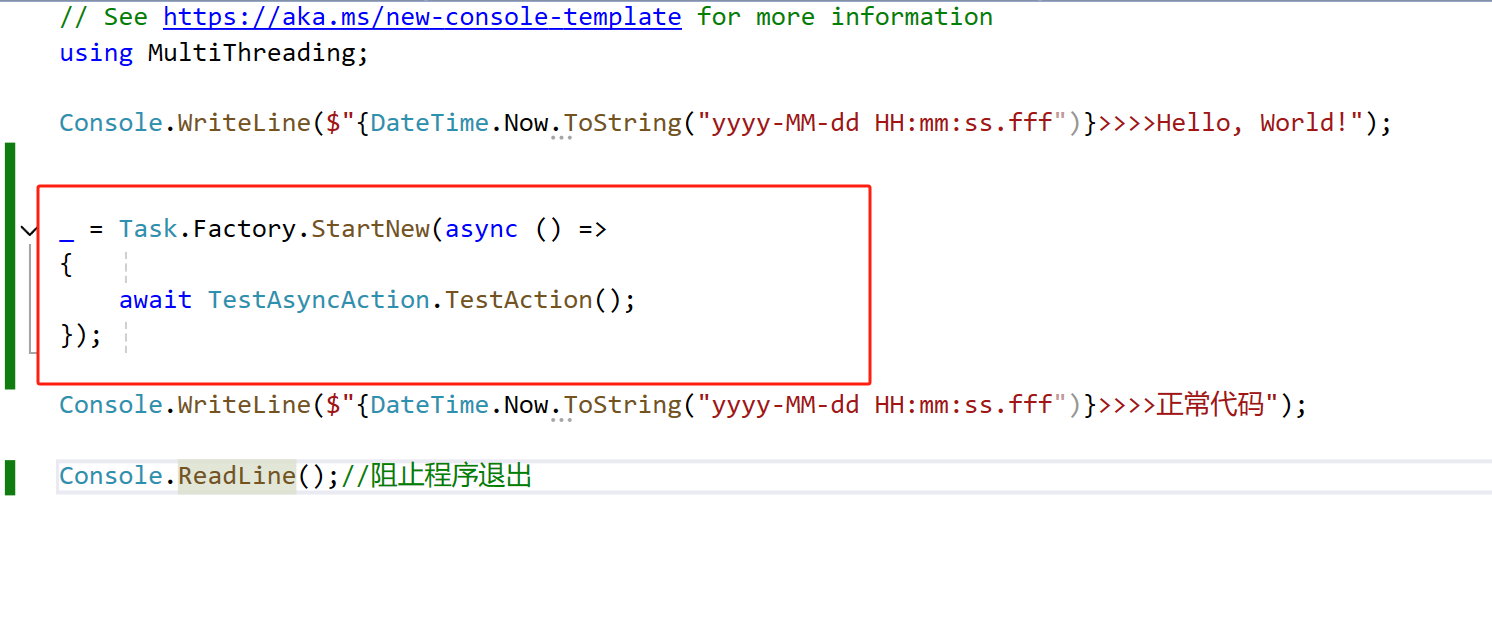 4、如果想等待新开线程执行完再继续执行后续的代码,可以使用如下方式:使用 await 等待整个操作完成 执行结果: 5、也可以使用Task.Factory创建一个任务工厂来实现