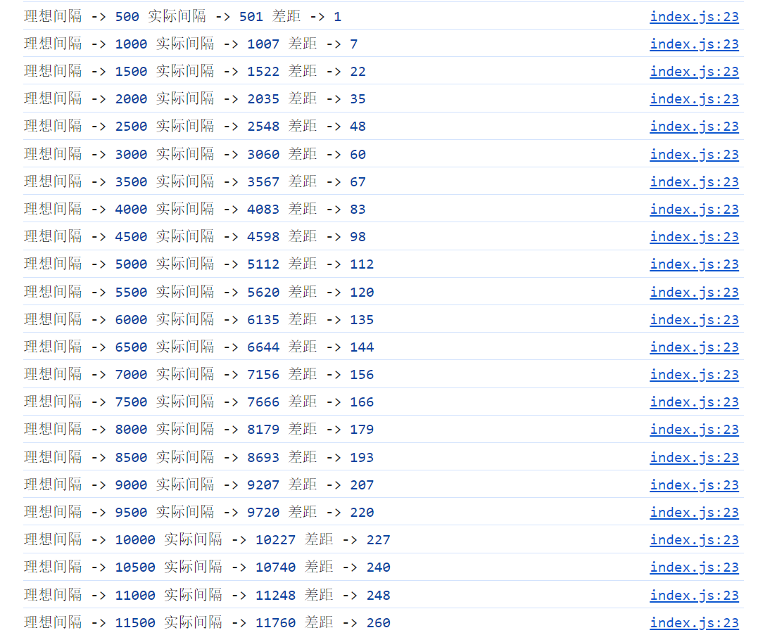 可以看到现在的实际间隔事件就比较准确了,当然这也不是百分百准确的,这只能最大保证定时器的准确性