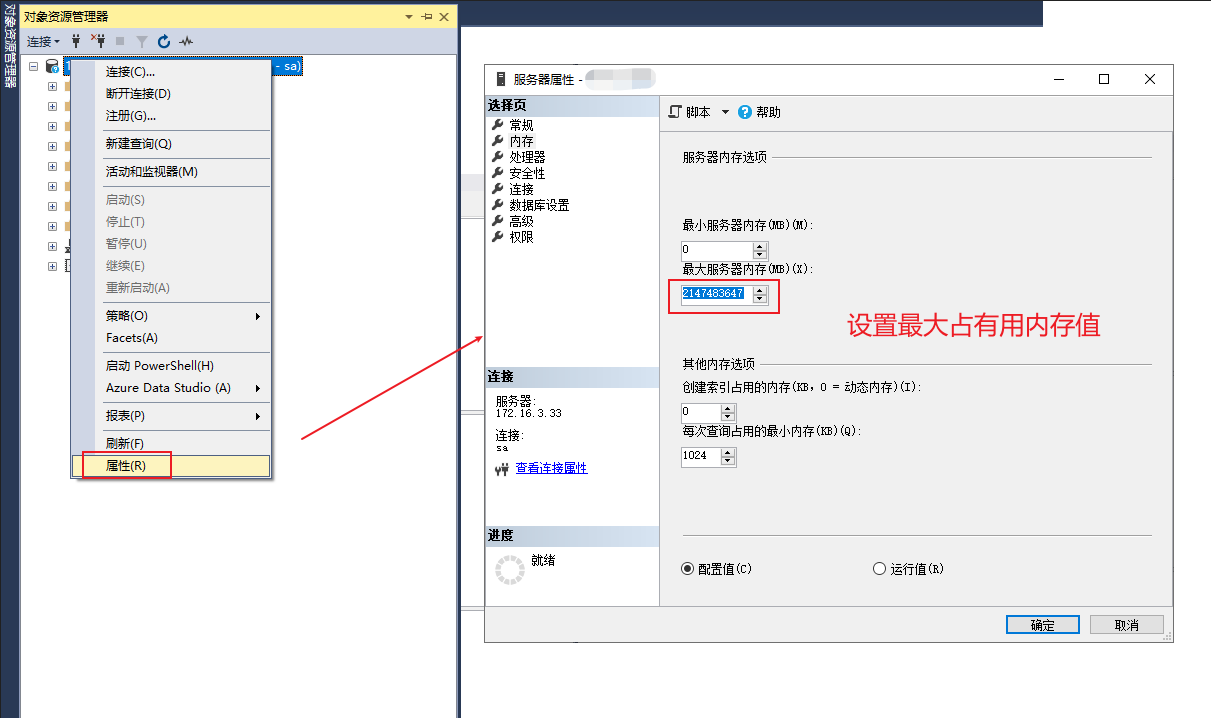 如果想让 Sql Server 主动释放 占用并空闲的内存空间,可以设置Sql Server占用内存的上限,就会让Sql server在