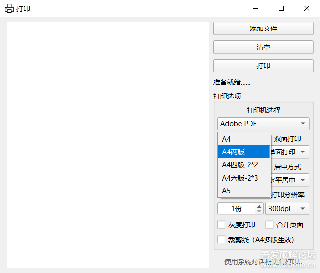 PDF文件批量打印工具:一张A4纸上合并打印2张或更多张PDF格式发票
