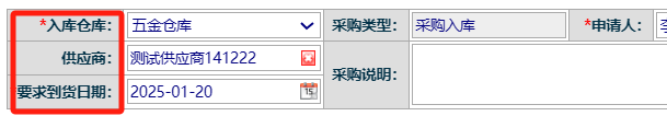 选好入库仓库,供应商,到货日期等
