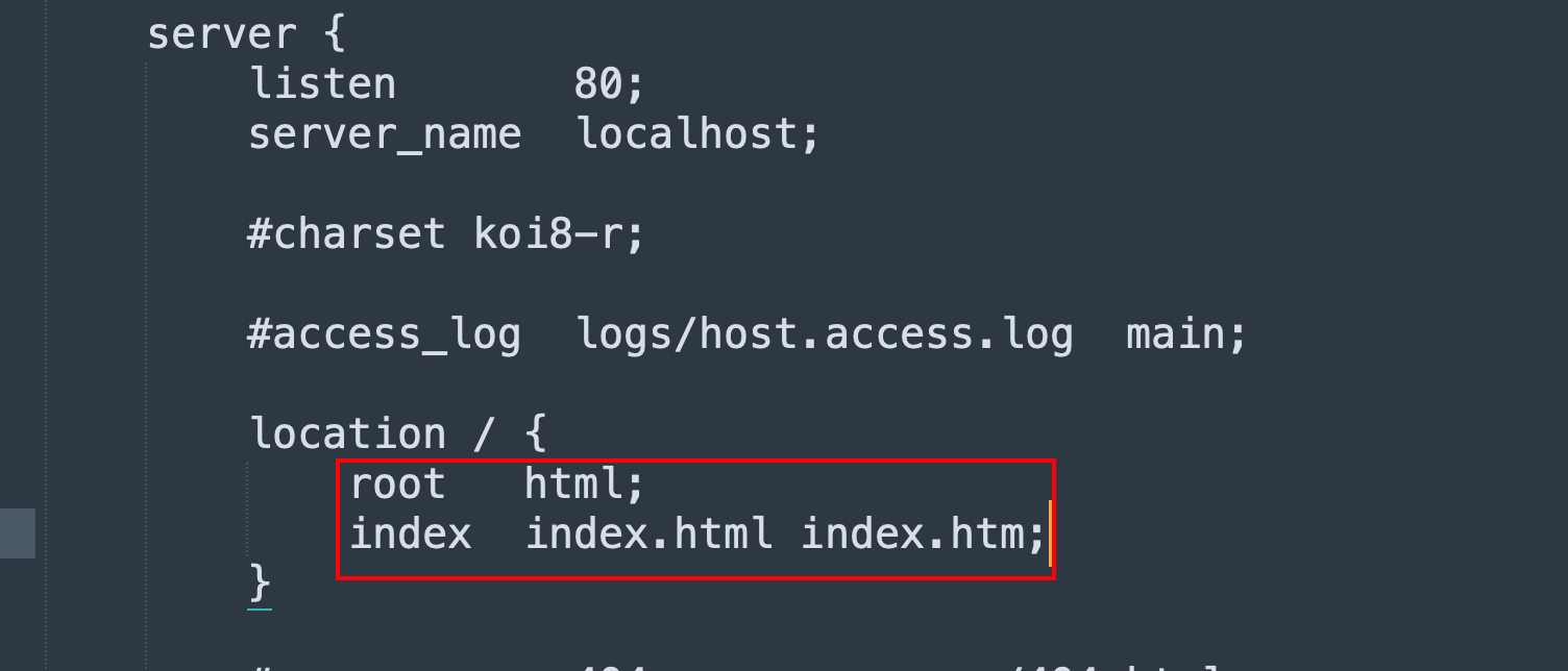 index index.html;               # 默认首页文件