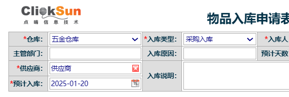 点晴永久免费OA-低耗品管理-货品新增入库单