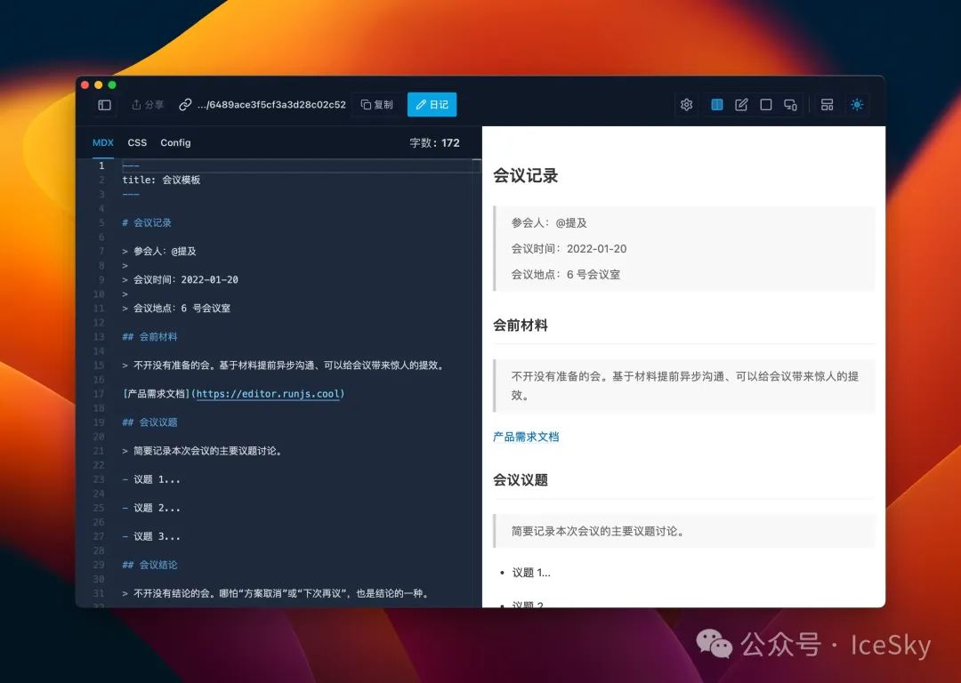 • 支持在线使用,在线使用地址:https://mdxnotes.com/post?id=demo