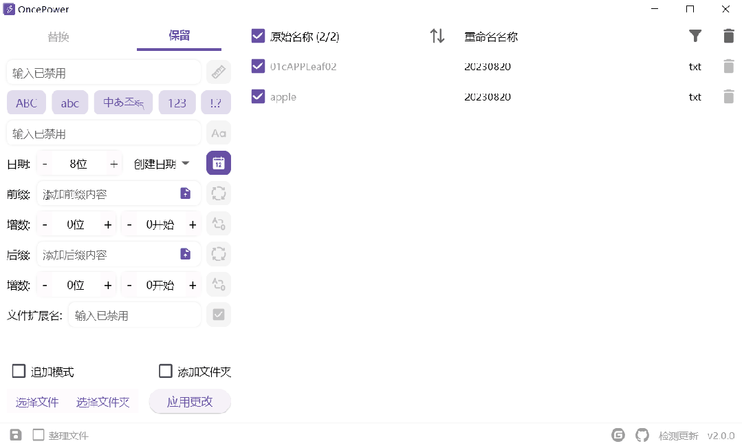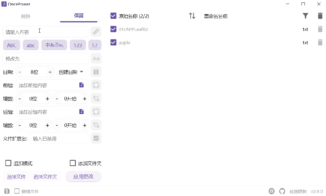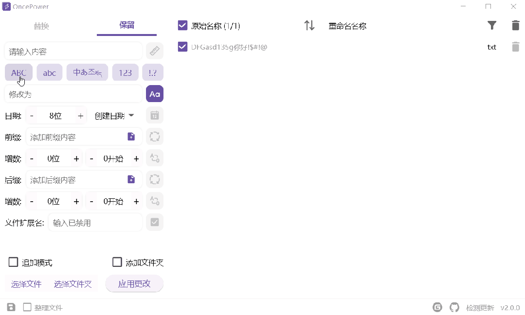 OncePower 开源免费的批量重命名工具