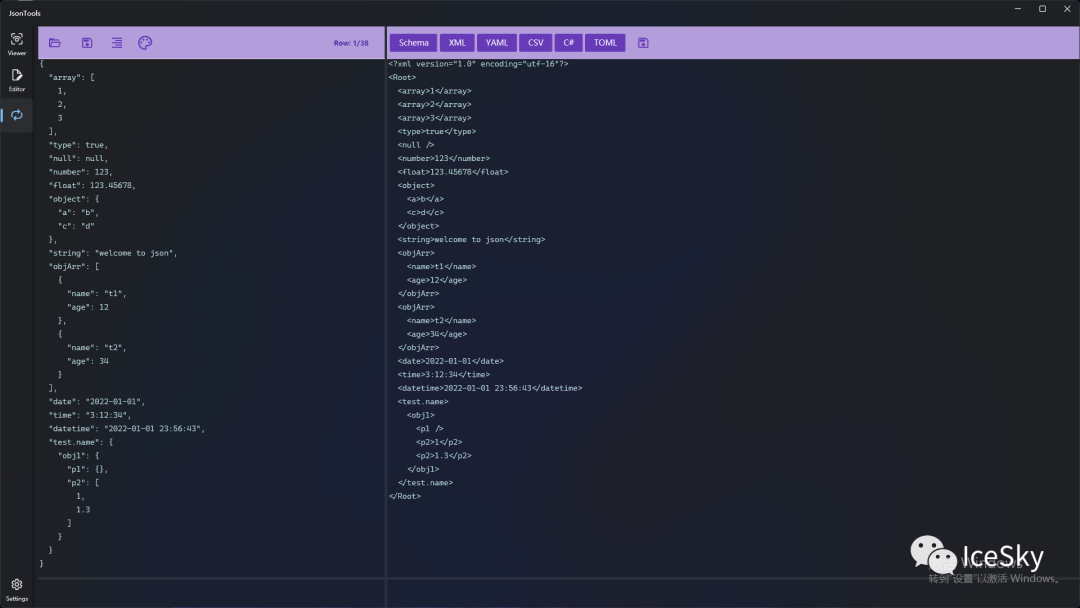 支持Json预览、编辑和转换的Windows 应用:JsonTools