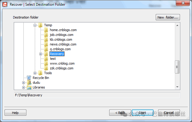 5. Next 并选择目标文件夹(Destination folder),用于存放恢复过程中生成的SQL语句与bat文件。