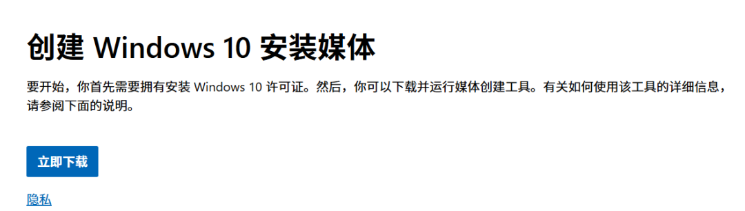 Win10和Win11系统均支持安装媒体下载。这里以Win10系统为例,Win11系统同理。具体步骤如下: