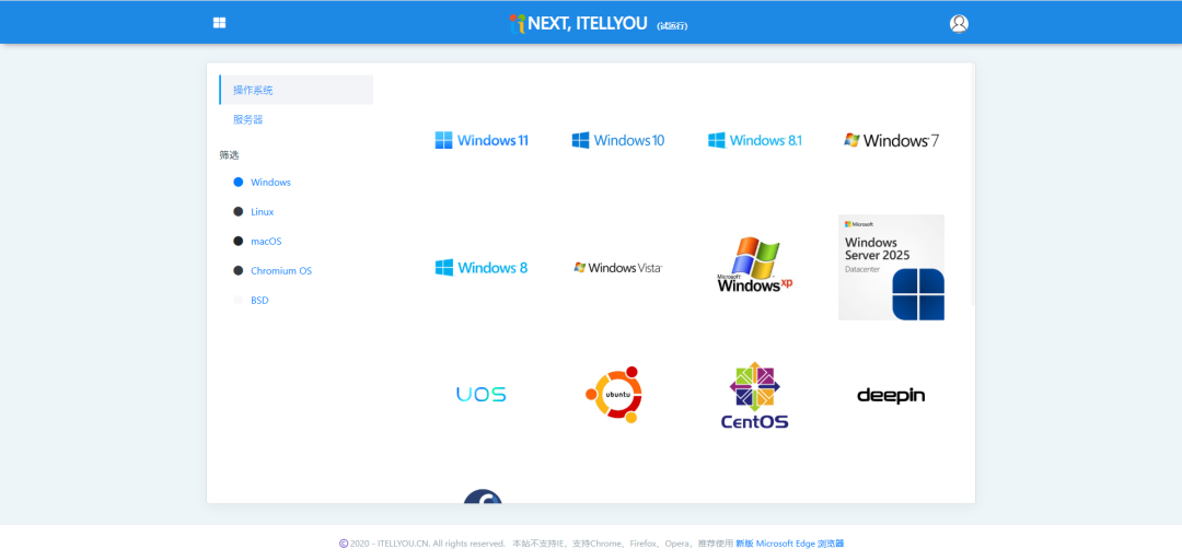 ITellYou官网的主页面设计直观且易于导航。包括Windows、Linux、MacOS系统镜像。而在旧版中包含Windows ISO、Office ISO、开发工具等。此外,首页中央通常会有一个轮播图区域,展示了一些最热门或最新的ISO镜像下载链接,方便用户直接访问。资源列表部分则详细列出了所有可用的ISO镜像,每项记录都包含了名称、大小、更新日期以及下载链接等关键信息。页脚提供了额外的帮助和支持信息,如常见问题解答和联系方式。