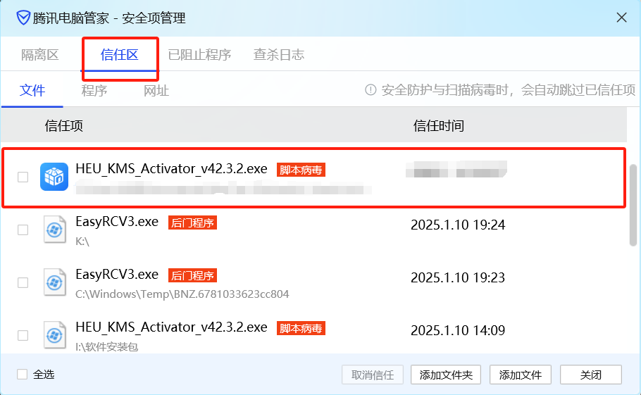 3、该软件下载及使用中会出现强制删除的情况(认为该软件为病毒软件),请大家在下载和使用时关闭/退出安全防护软件,或者添加到安全防护软件信任区。