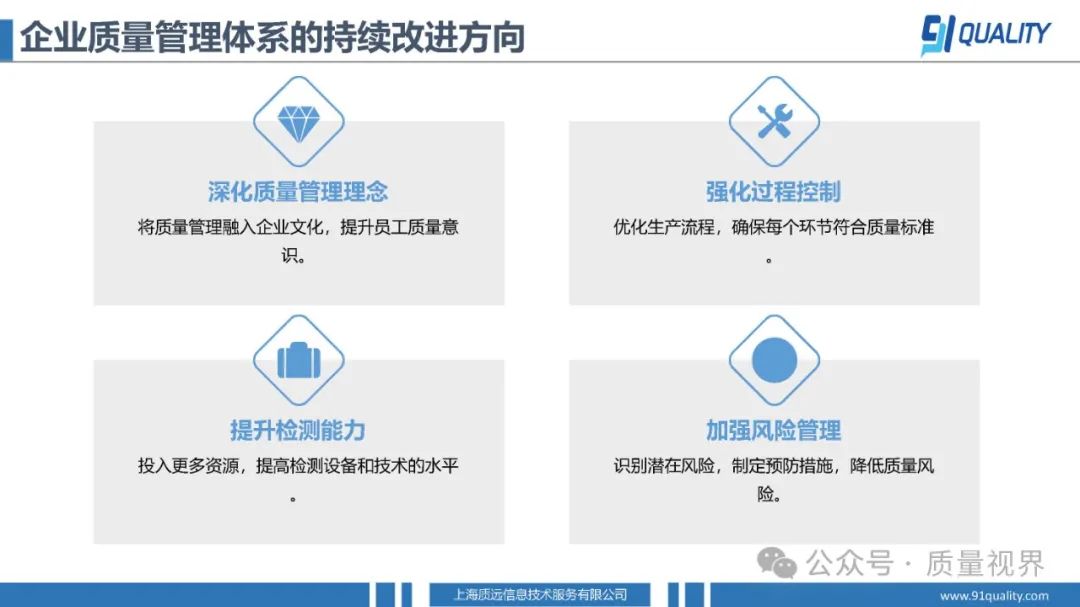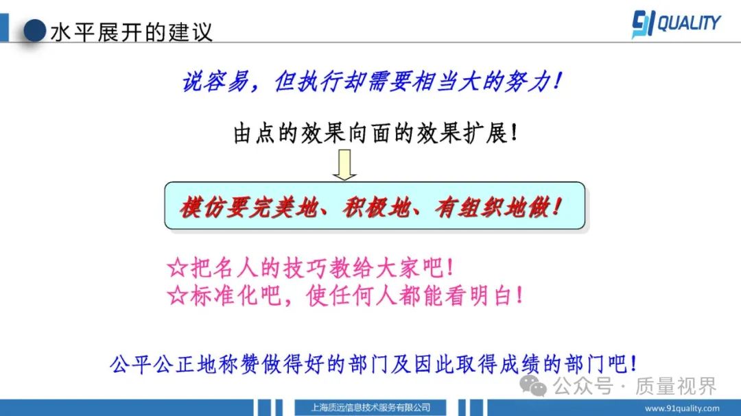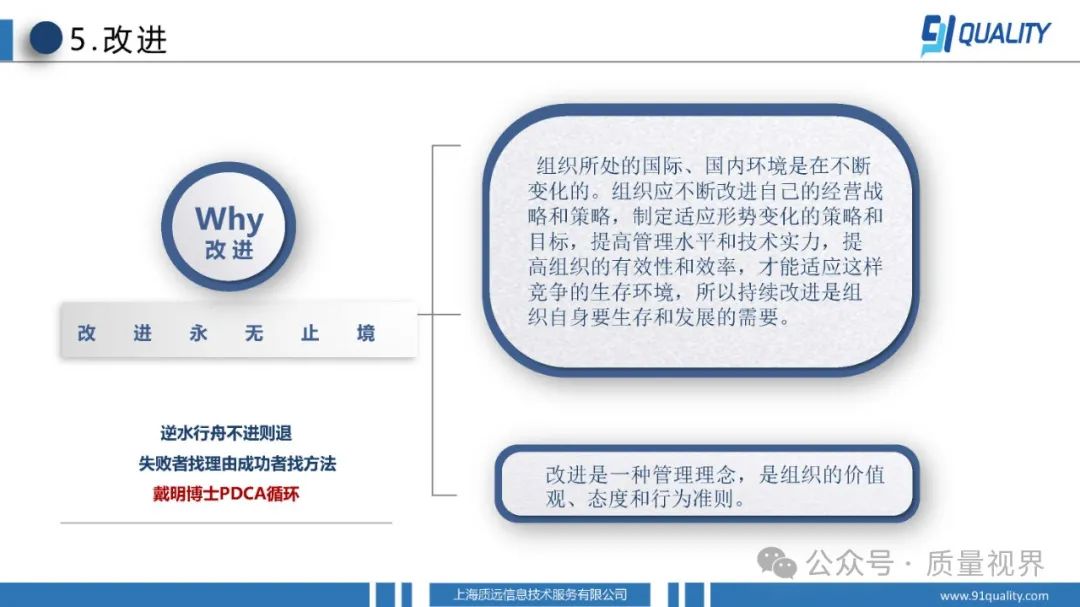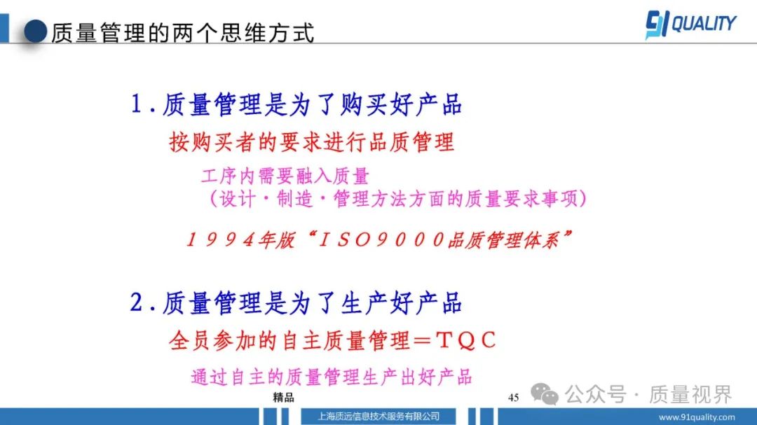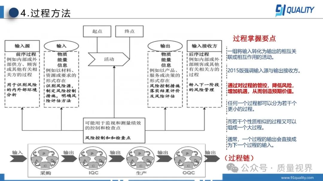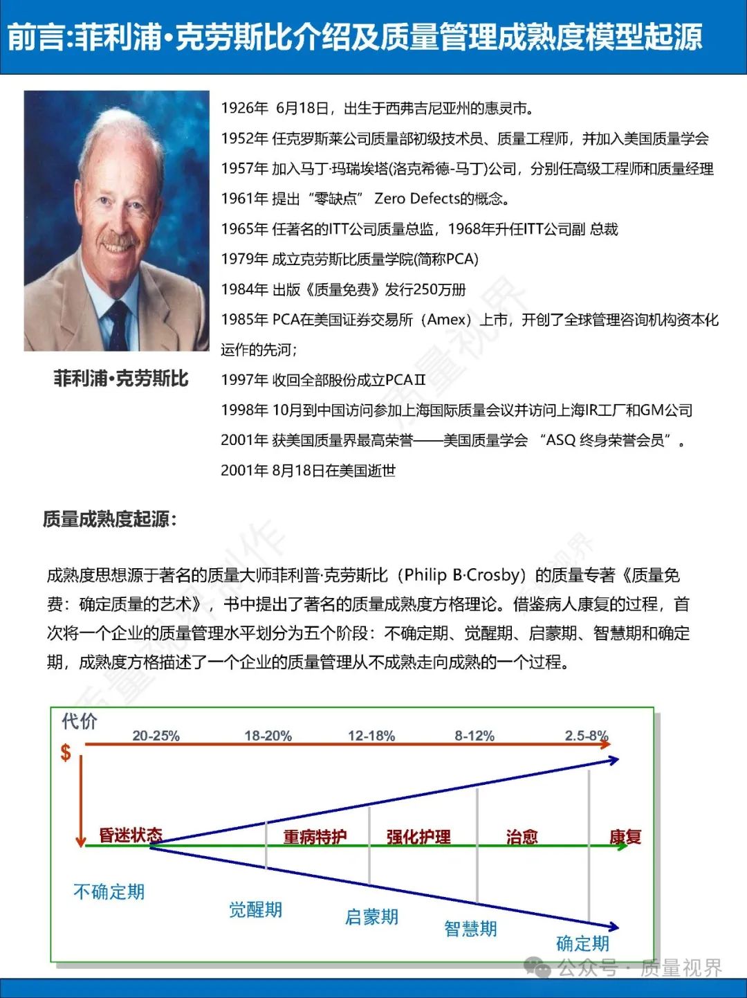 在当今竞争激烈、市场环境瞬息万变的商业版图中,产品与服务质量宛如企业的生命线,牢牢把控着企业兴衰存亡的命脉。而处于质量管理核心位置的质量人,肩负着保障质量水准、推动质量提升的重任,在这场质量捍卫战里,系统思维成为其不可或缺的 “秘密武器”。本文介绍质量管理4个等级、7大原则、10个基本思维方式、12个步骤、15个基本原理,每一条都是管理精髓。 01 质量的4个等级 02 质量管理的7大原则 质量管理的七大原则是以顾客为关注焦点、领导作用、全员参与、过程方法、改进、循证决策、关系管理 ,以下是对这些原则的详细阐述: 1、以顾客为关注焦点:深入了解顾客需求,包括潜在需求。例如苹果公司通过不断创新产品功能和提升用户体验,满足了消费者对于便捷、高效和高品质电子产品的需求。确保组织的目标与顾客需求和期望相结合,将顾客满意度作为衡量工作成效的重要指标。 2、领导作用:领导者要为组织制定清晰的质量方针和质量目标,指明发展方向。如华为的任正非提出了 “以客户为中心,以奋斗者为本” 的核心价值观,引领华为在全球通信和科技领域取得巨大成功。 3、全员参与:为员工提供必要的培训和资源,使他们具备相应的能力和知识,以胜任质量管理工作。比如一些制造企业会定期组织员工参加生产技能和质量管理培训课程。建立激励机制,鼓励员工积极参与质量改进活动,对表现优秀的员工给予奖励和认可。 4、过程方法:识别和确定组织内的关键过程,例如产品设计开发过程、生产制造过程、售后服务过程等。对每个过程进行策划、实施、检查和改进,即 PDCA 循环,确保过程的有效性和效率。丰田公司的生产过程管理就是过程方法的优秀典范,通过不断优化生产流程,实现了高质量和高效率的生产。 5、改进:建立持续改进的机制和文化,鼓励员工发现问题并及时提出改进建议。如海尔集团的 “日清日高” 管理模式,要求员工每天对工作进行总结和改进。运用各种质量管理工具和方法,如六西格玛、精益生产等,对组织的产品、服务和管理过程进行持续改进。 6、循证决策:收集和分析与质量管理相关的数据和信息,包括顾客反馈、生产数据、质量检测数据等。例如电商企业通过分析大量的顾客评价数据,来改进产品和服务质量。 7、关系管理:识别组织的相关方,包括供应商、合作伙伴、顾客、员工等,并建立良好的沟通和合作关系。 03 质量管理的10个基本思维方式 04 质量管理体系建立和实施的12个步骤 05 质量管理的15个基本原理 阅读原文:原文链接 点晴模切ERP更多信息:http://moqie.clicksun.cn,联系电话:4001861886 该文章在 2025/1/23 9:24:29 编辑过 |