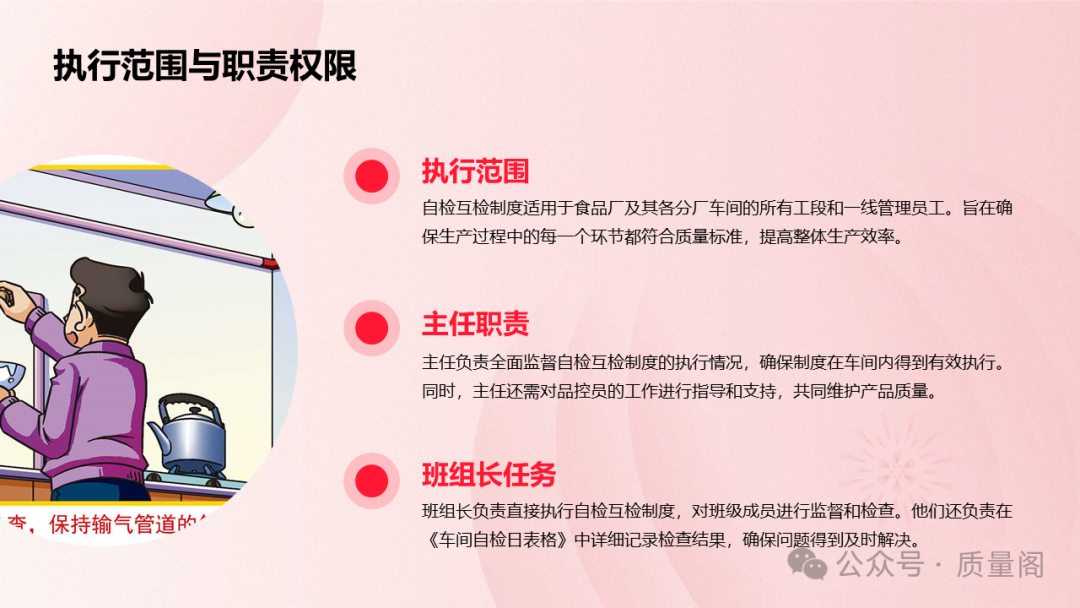 产品质量是企业的生命线,所有的生产工作都是为了质量。车间自检互检制度的核心目的在于确保产品的生产质量过程始终处于监控状态,及时发现并纠正生产过程中的质量问题。通过制度,企业可以迅速找出不良产品的原因,从而排除缺陷,达到不接受不良品、不制造不良品、不传递不良品的结果。这样一来,企业不仅可以降低生产成本,提高产品质量,还能维护公司的正面形象,增强市场竞争力。车间自检互检制度适用于食品厂及其各分厂车间的各个工段岗位。这意味着,无论是生产线的哪个环节,每一个一线管理员工都需要严格遵守该制度。通过全员参与,企业可以确保产品质量在每个环节都得到保障。车间主任作为生产管理的核心人物,负责监督整个车间的生产质量。他们需要定期巡查生产线,了解生产情况,并对发现的问题进行及时纠正。同时,主任还需要对班组长和品控员的工作进行指导和监督,确保他们严格执行自检互检制度。班组长是生产线的直接管理者,他们负责具体执行自检互检制度。在生产过程中,班组长需要密切关注产品质量,及时发现并处理质量问题。同时,他们还需要对员工的自检互检工作进行监督和指导,确保员工按照要求进行操作。品控员是车间质量管理的专业人员,他们负责对生产过程中的产品质量进行抽查和检查。品控员需要严格按照质量标准和作业指导书进行操作,确保检查结果的准确性和可靠性。同时,他们还需要将检查结果记录在《车间自检日表格》中,以便后续分析和改进。当品控员发现不合格产品时,应立即通知相关人员停止生产加工,并通知相关负责人责令整改。同时,他们还需要对不合格产品进行标识和隔离,防止其流入下一个工序或市场。每个工作岗位的员工都需要对自己的每一项工作和加工的产品进行全检。这意味着员工需要对自己生产的产品进行全面、细致的检查,确保每个产品都符合质量要求。同时,上一个工序的员工还有权对下一个工序的产品进行检查,以实现互检的目的。通过全检和互检的结合,企业可以确保产品质量在每个环节都得到保障。自检和互检的方法主要采用目检法。即员工通过肉眼观察产品的外观、形状、大小、表面是否有异物等特征来判断产品是否合格。这种方法简单易行,但需要员工具备一定的经验和技能。因此,企业需要对员工进行定期的培训和考核,以提高他们的自检互检能力。实施自检是员工对工作认真负责的表现。通过自检,员工可以及时发现并纠正自己工作中的问题,确保产品质量符合要求。这不仅有助于提升员工的个人素质和工作能力,还能增强企业的凝聚力和向心力。不实施自检则是员工工作马虎的表现。如果员工不按照要求进行自检,就可能导致不良品流入下一个工序或市场,给企业带来严重的经济损失和声誉损害。因此,企业需要对不实施自检的员工进行严肃处理,以维护生产秩序和质量安全。对于不按照要求自检的员工和部门,企业需要按照损失情况进行相应的处罚。这不仅可以起到警示作用,还能促使员工和部门更加重视自检工作,确保产品质量的稳定和提高。自检的范围包括产品的形状大小是否符合要求、产品表面是否有异物、产品重量是否准确、产品的包装日期是否准确且符合要求等。这些方面都是影响产品质量的关键因素,因此员工在进行自检时需要特别关注。自检的方法主要采用目检法,目的是确认本工序生产的产品是否符合标准。通过自检,员工可以及时发现并纠正生产过程中的问题,确保产品质量符合要求。对于符合生产标准要求的产品,可以流到下一个工序进行进一步加工或包装;对于不符合要求的产品,则需要立即返工或查找责任人填写报损单。同时,员工还需要将不良品放在指定的存放区域并作出标识,以便后续处理和分析。自检参照的标准主要是作业指导书。作业指导书是企业根据产品质量标准和生产经验制定的详细操作规程,员工在进行自检时需要严格按照作业指导书的要求进行操作和判断。每个岗位的员工都要对自己的工作结果负责。这要求员工具备强烈的责任心和使命感,认真对待每一个产品和每一项工作。只有这样,才能从根本上保证产品的质量。员工在进行自主检查时,一旦发现异常要立即上报主管领导和品控员。同时,还需要要求责任相关人员立即整改返工,确保不良品不流入下一个工序。这种及时上报和整改的机制有助于企业快速应对生产过程中的问题,降低质量风险。对于检查出来的不良品,员工需要将其放在指定的存放区域并作出标识。同时,还需要记录各个环节不良品的数量和原因,以便后续分析和改进。这种详细的记录有助于企业了解生产过程中的质量问题及其分布情况,为制定针对性的改进措施提供依据。对于因自检不认真而造成的损失,责任人应承担全部损失。这种严格的责任追究机制有助于增强员工的责任心和紧迫感,促使他们更加认真地对待自检工作。对于填写报损的数据,员工需要确保其真实可信。如果存在误差或虚假情况,企业将严肃处理相关人员。这种严格的数据管理制度有助于维护企业的生产秩序和质量安全。各班组应严格真实填写自检的不良品数量和原因分析,并在每天早会上进行宣导。通过对自检差的员工和班组提出批评和整改意见,对自检和互捡做得好的员工进行表扬,企业可