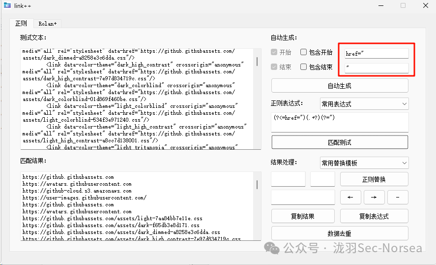 支持快速生成和匹配简单正则表达式,处理数据。支持自定义常用表达式,配置文件config/正则.txt