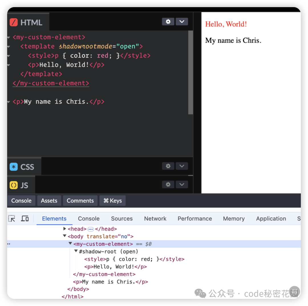 随着声明式 Shadow DOM 的出现,这一局限被打破。现在,开发者可以实现完全不依赖 JavaScript 的 Shadow DOM 应用。