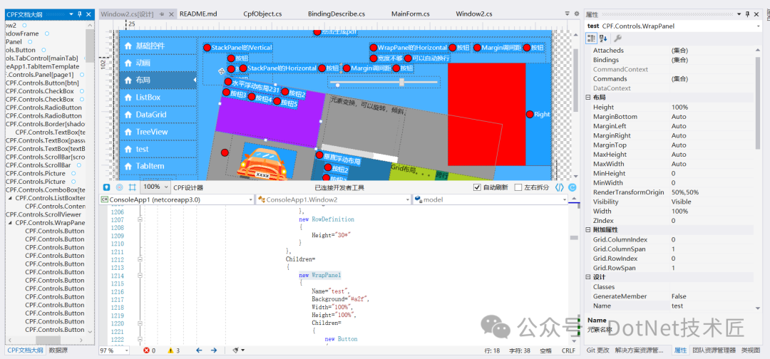 之前一直在纠结要不要开源,一个人太难搞了,欢迎大家一起壮大开源社区。 肯定有很多人会把CPF和Avalonia、Maui进行对比,自己根据喜好和需求选择吧,CPF是没有Xaml,不排除将来可能会增加Xaml的功能。 CPF会尽量适配国内系统和环境。 项目使用 C# 描述UI
