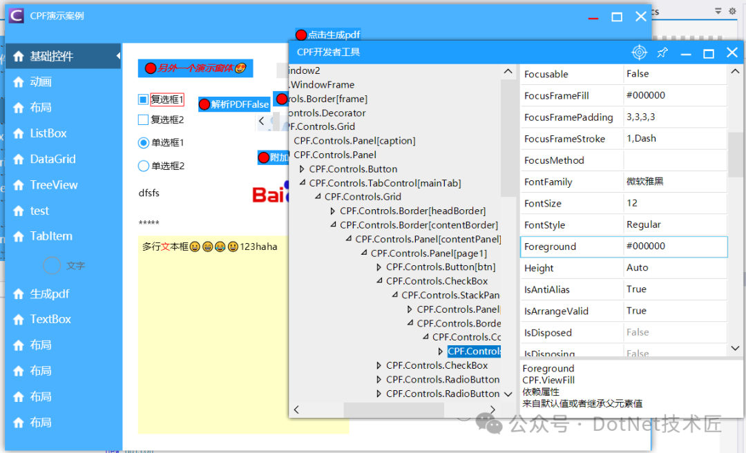 项目地址 GitHub:https://github.com/wsxhm/CPF Gitee:https://gitee.com/csharpui/CPF 总结 以上仅展示了 CPF 的部分功能。更多实用特性和详细信息,请大家访问项目地址。 希望通过本文能为C#跨平台、高性能UI 开发提供有价值的参考。 阅读原文:原文链接 该文章在 2025/1/24 9:15:32 编辑过 |